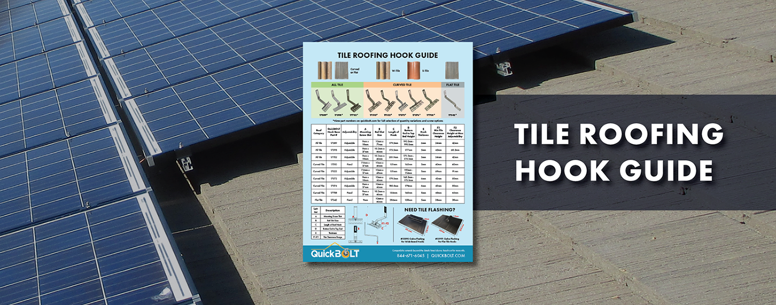 90° All Tile Roof Hook, 8mm Height Adjust Range Kit with 5/16" X 3" Screws - for Curved